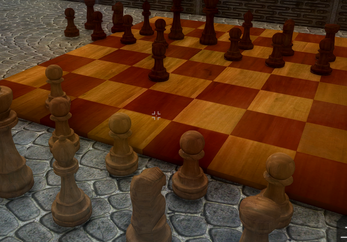 Walk on the chess board and press the E key to start playing Chess in 3D.